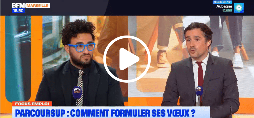 Mickael Bosco, directeur du Campus esaip d’Aix en Provence était récemment invité sur le plateau de BFM TV – Focus emploi. Il y a abordé un sujet clé pour les lycéens et leurs familles : le fonctionnement de Parcoursup et les conseils pour bien formuler ses vœux. Début du visionnage à 41 minutes.